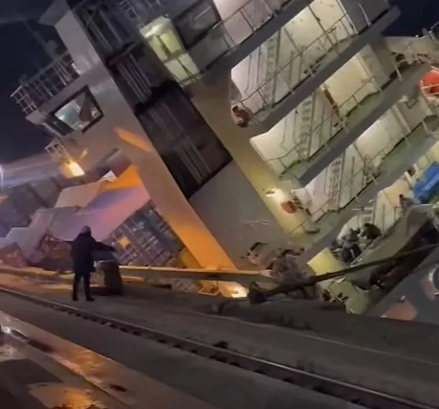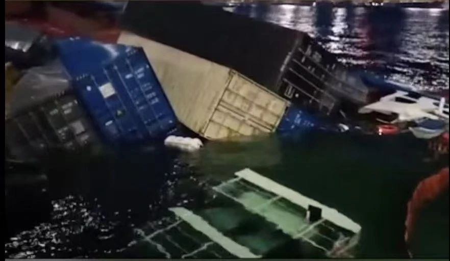 操作不当?货物落水!一集装箱船装货中侧翻!