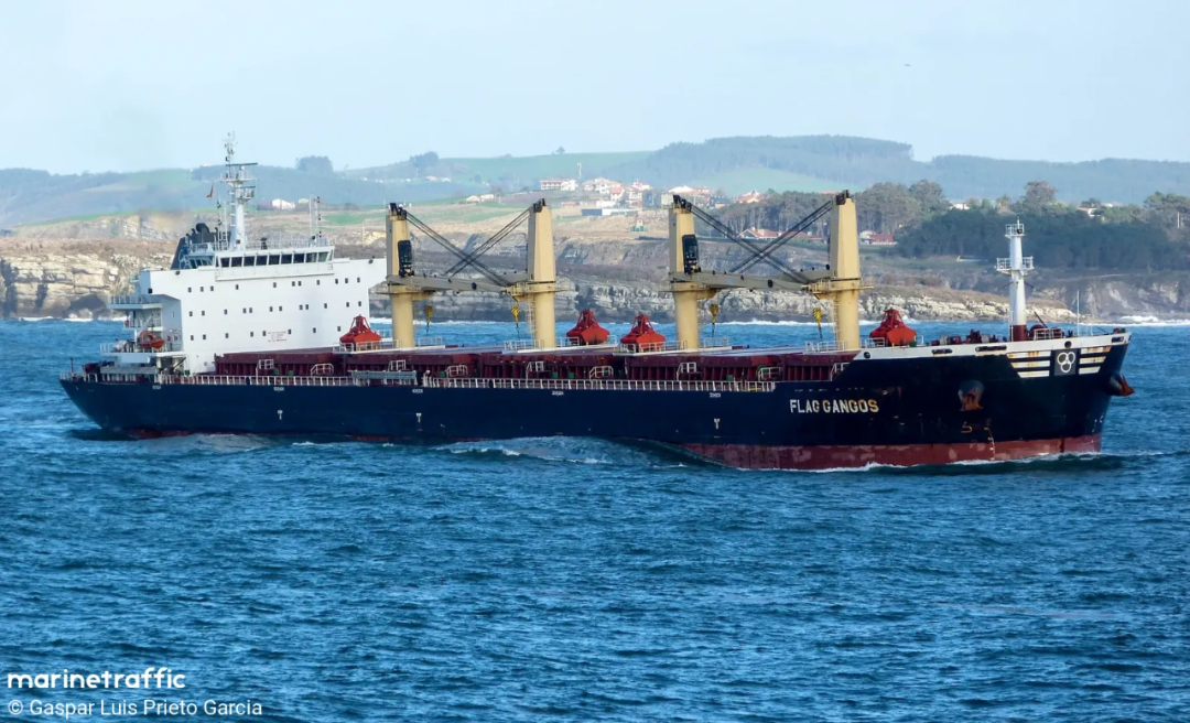 “Flag Gangos”号是一艘散货船,2013年建造,目前悬挂马耳他的国旗航行,该船为希腊所有,正开往斯里兰卡的汉班托塔港。