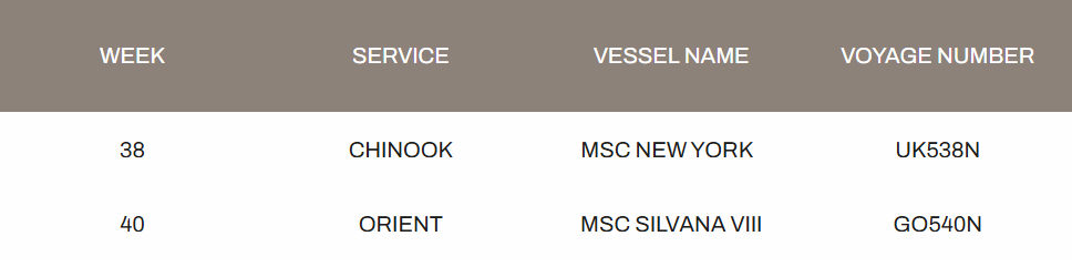 9月22日,MSC再次宣布,计划在第38至41周之间调整其亚洲至美国和加拿大航线的运力。