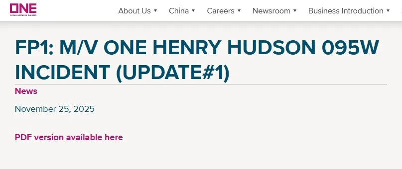 11月21日晚,海洋网联船务(ONE)运营的集装箱船“One Henry Hudson”轮发生火灾并爆炸。目前,该船的救援仍在持续。