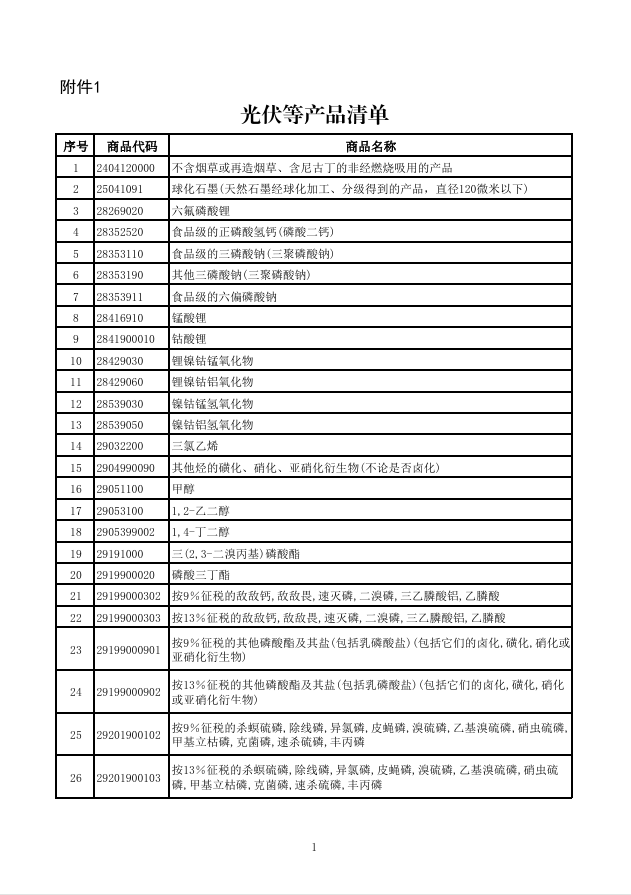 一、自2026年4月1日起,取消光伏等产品增值税出口退税。具体产品清单见附件1。