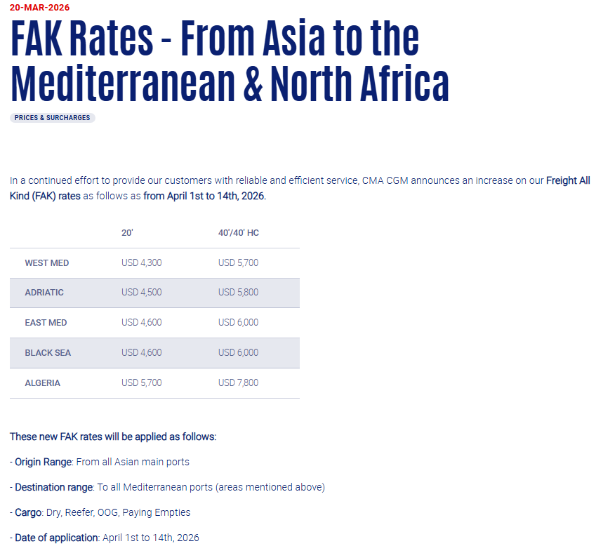 3.达飞-亚洲发往地中海及北非地区FAK费率调整